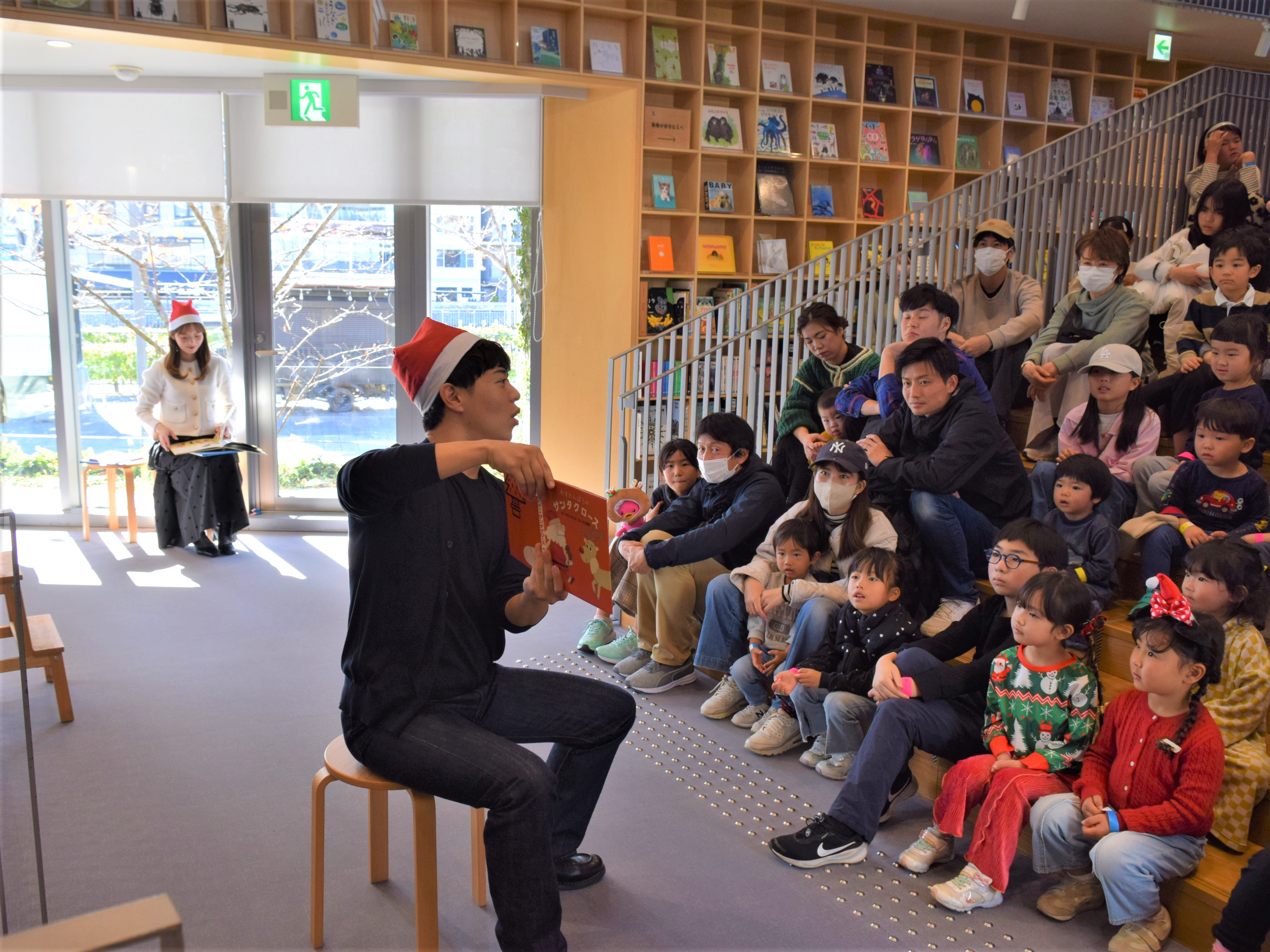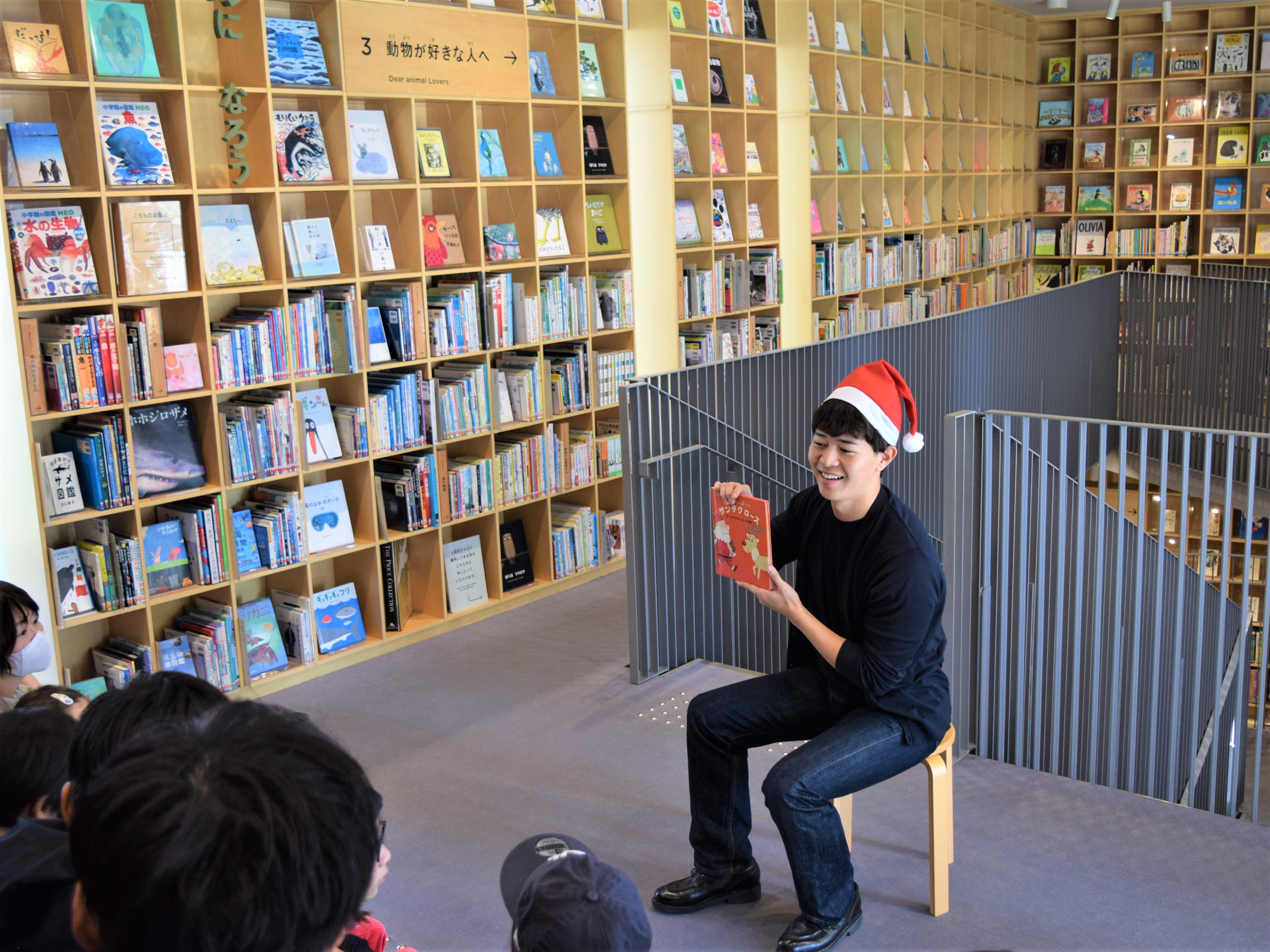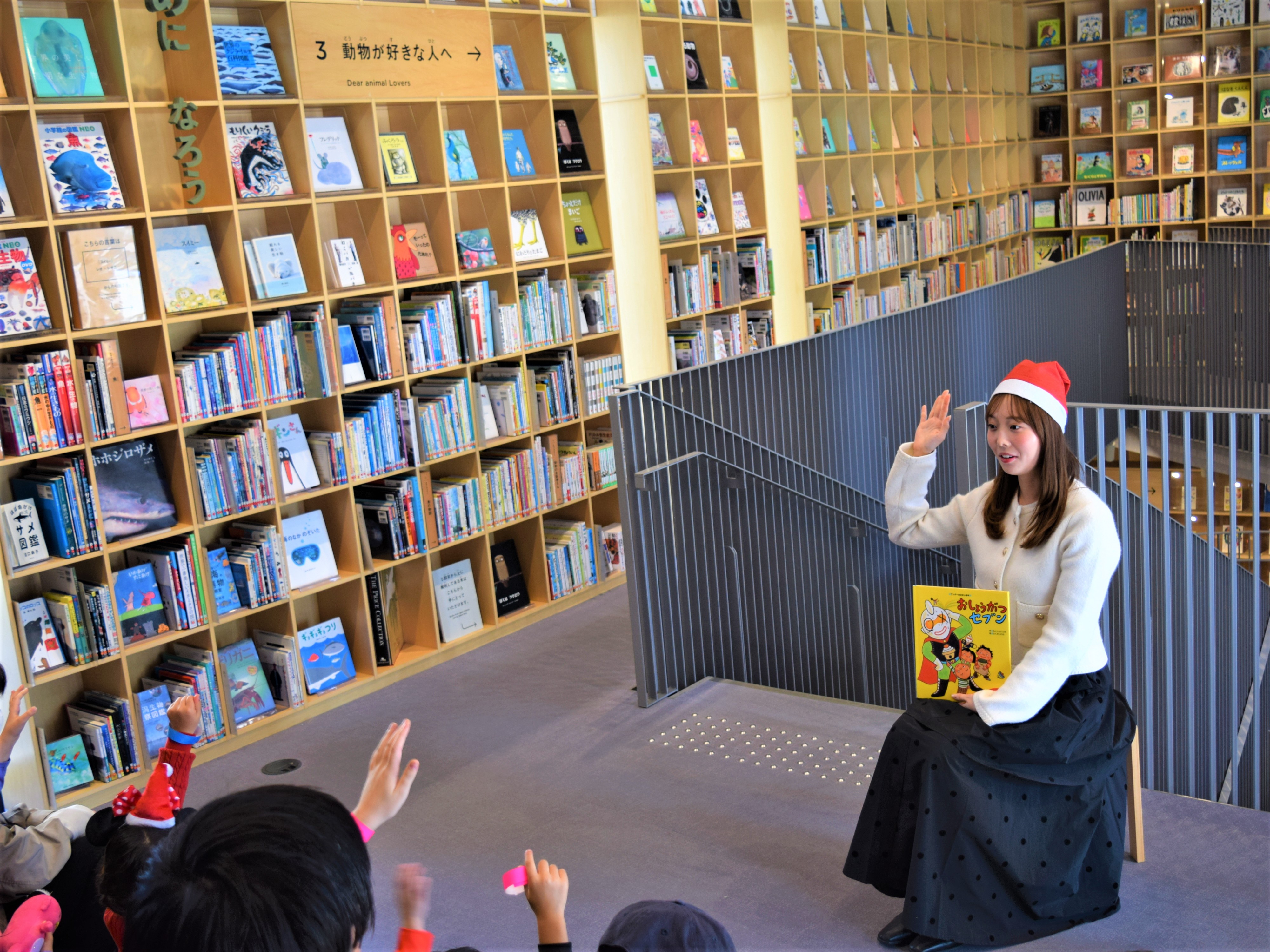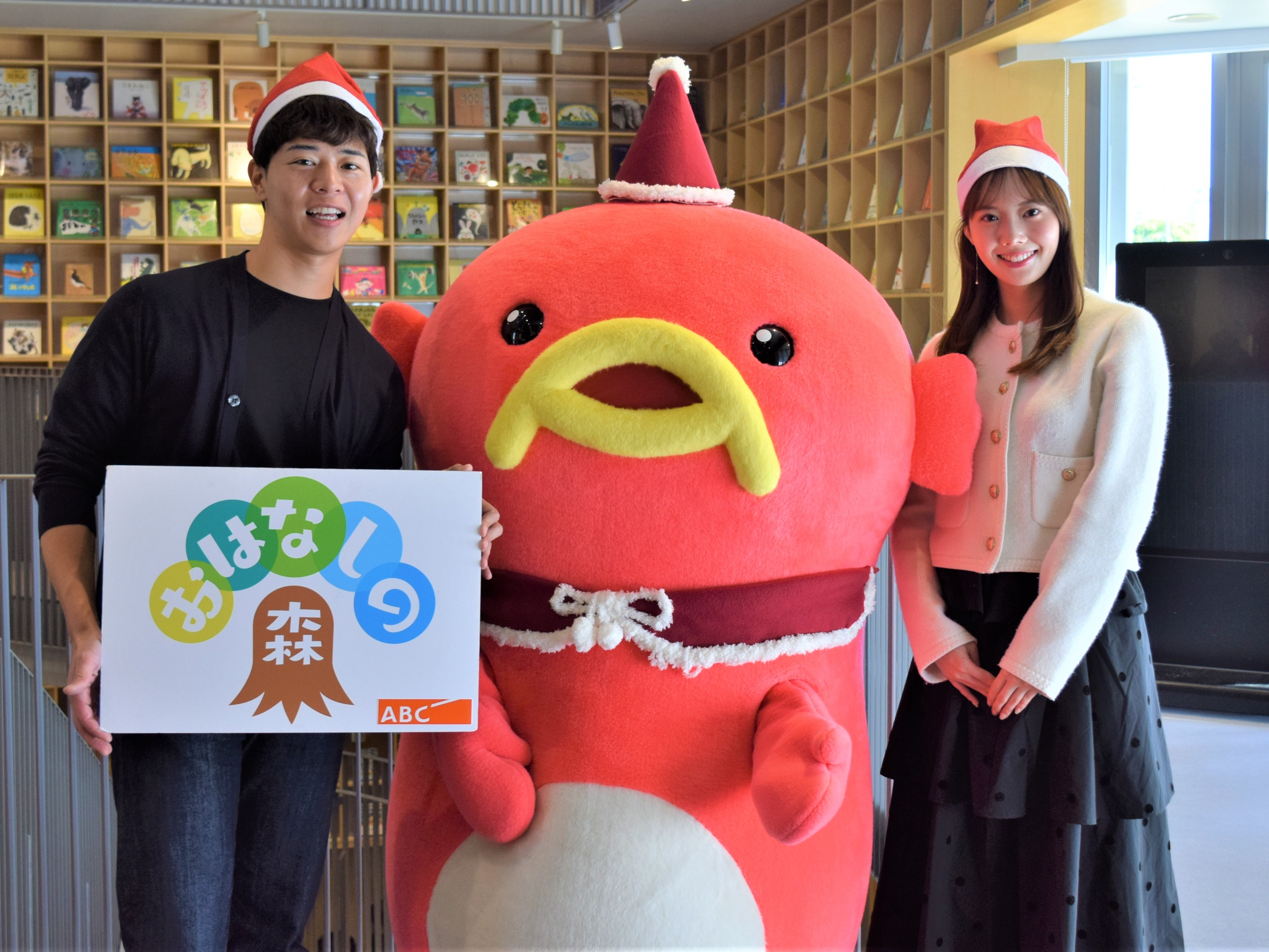 クリスマス直前!この時期とは思えない暖かさの中「こども本の森 中之島」で27回目となる「おはなしの森」に、小西陸斗&新貝まゆアナウンサーとエビシーが登場。「森のクリスマスパーティー」は、笑顔に満ちた朗読会となりました。