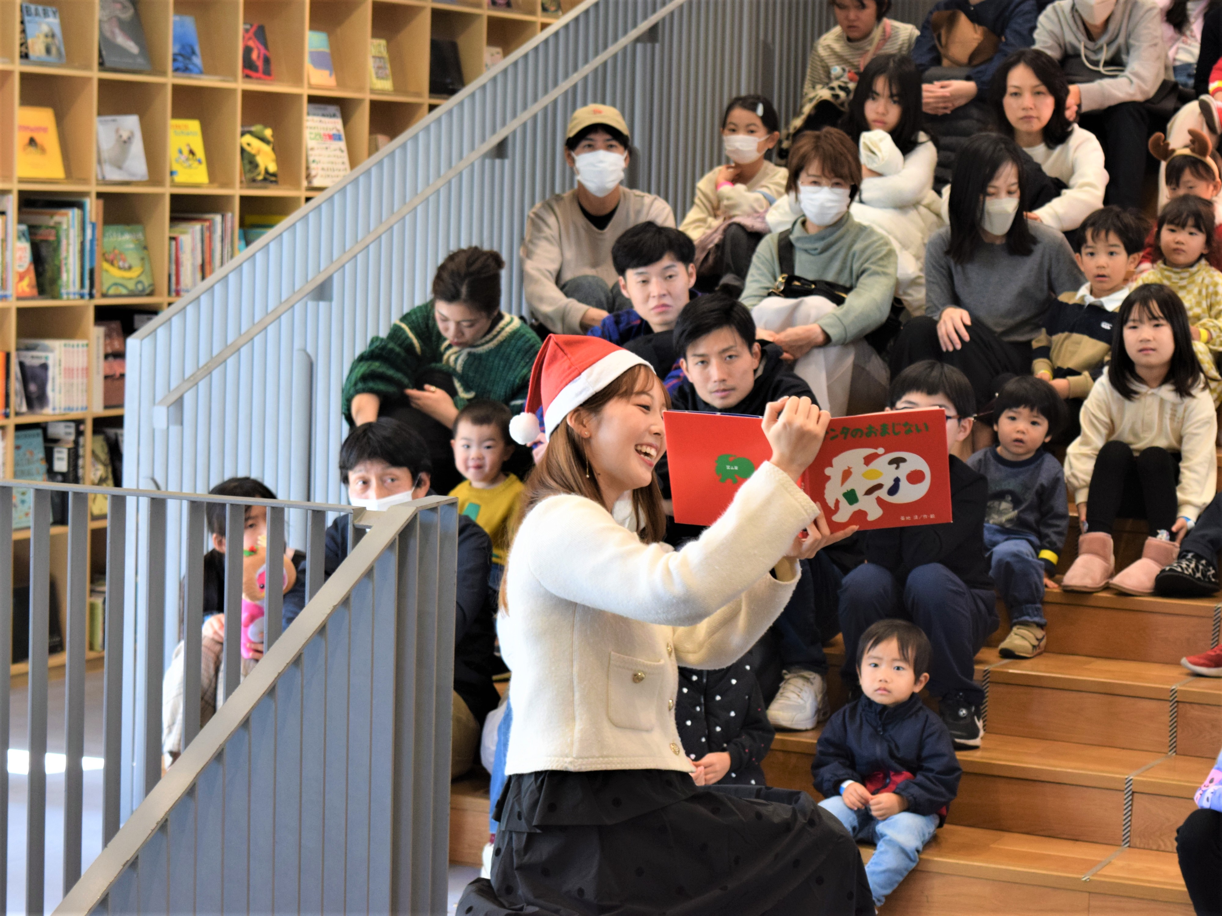 「慌てんぼうのサンタは知っていると思うけど・・・忘れんぼうのサンタってどうなん!?」とサンタさんは一体何を忘れているのかな!?と子どもたちに問いかけながら、しっかり者のトナカイと忘れん坊のサンタに成りきって、小西陸斗アナウンサーが朗読したのは「わすれんぼうのサンタクロース」という絵本。そんなトナカイとサンタのコントのようなやり取りに、ツッコミを入れる子どもたちで、会場は大いに盛り上がりました!