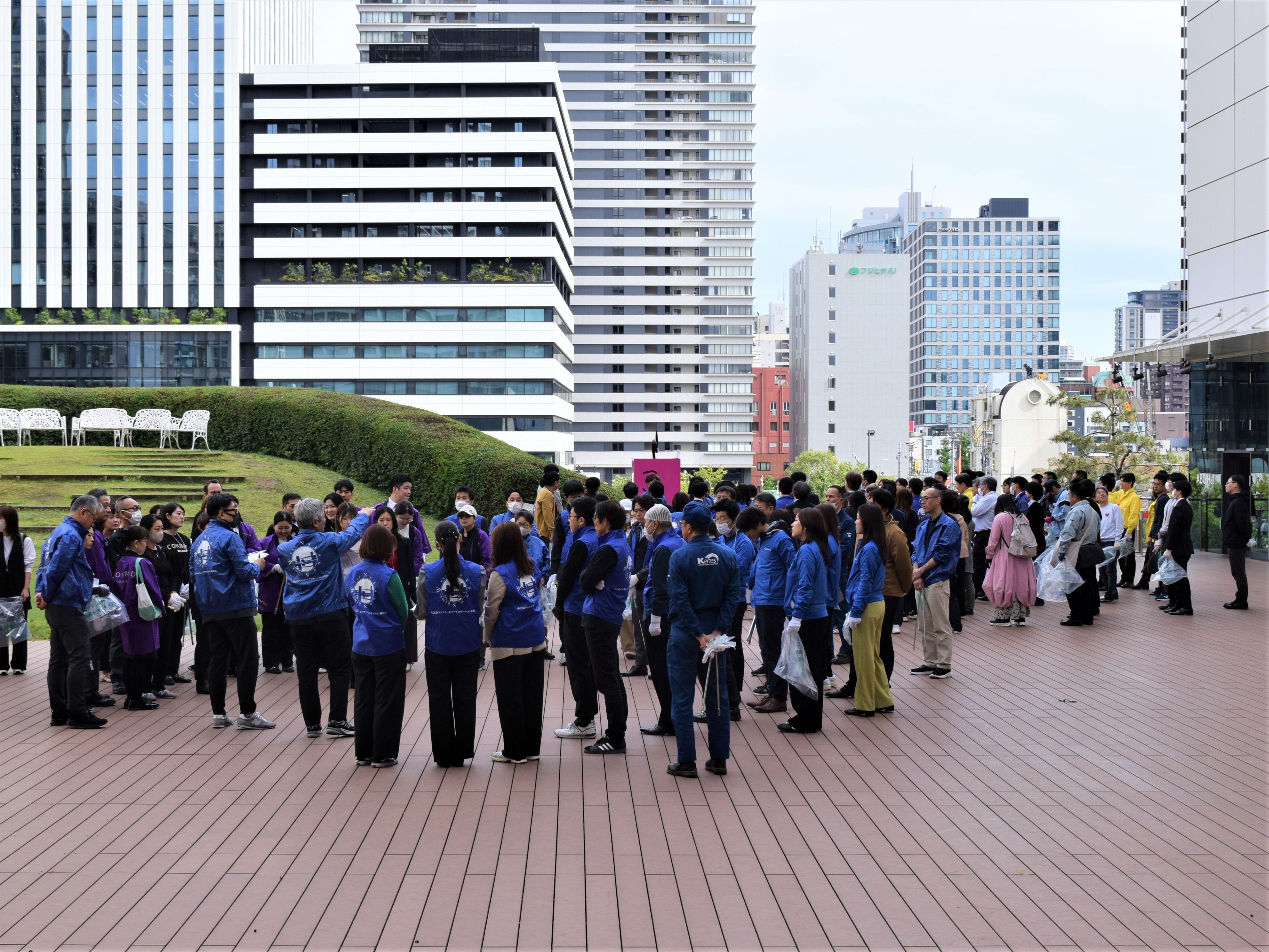 春の大型連休目前の4月24日(金)の午後、大阪市北区を中心とした中之島西地区で、「第26回中之島ウエスト・クリーンアップ活動」が開催され、ABCをはじめ周辺各企業の従業員などが、地域美化への取り組みとして緑道や歩道などの清掃活動を行いました。