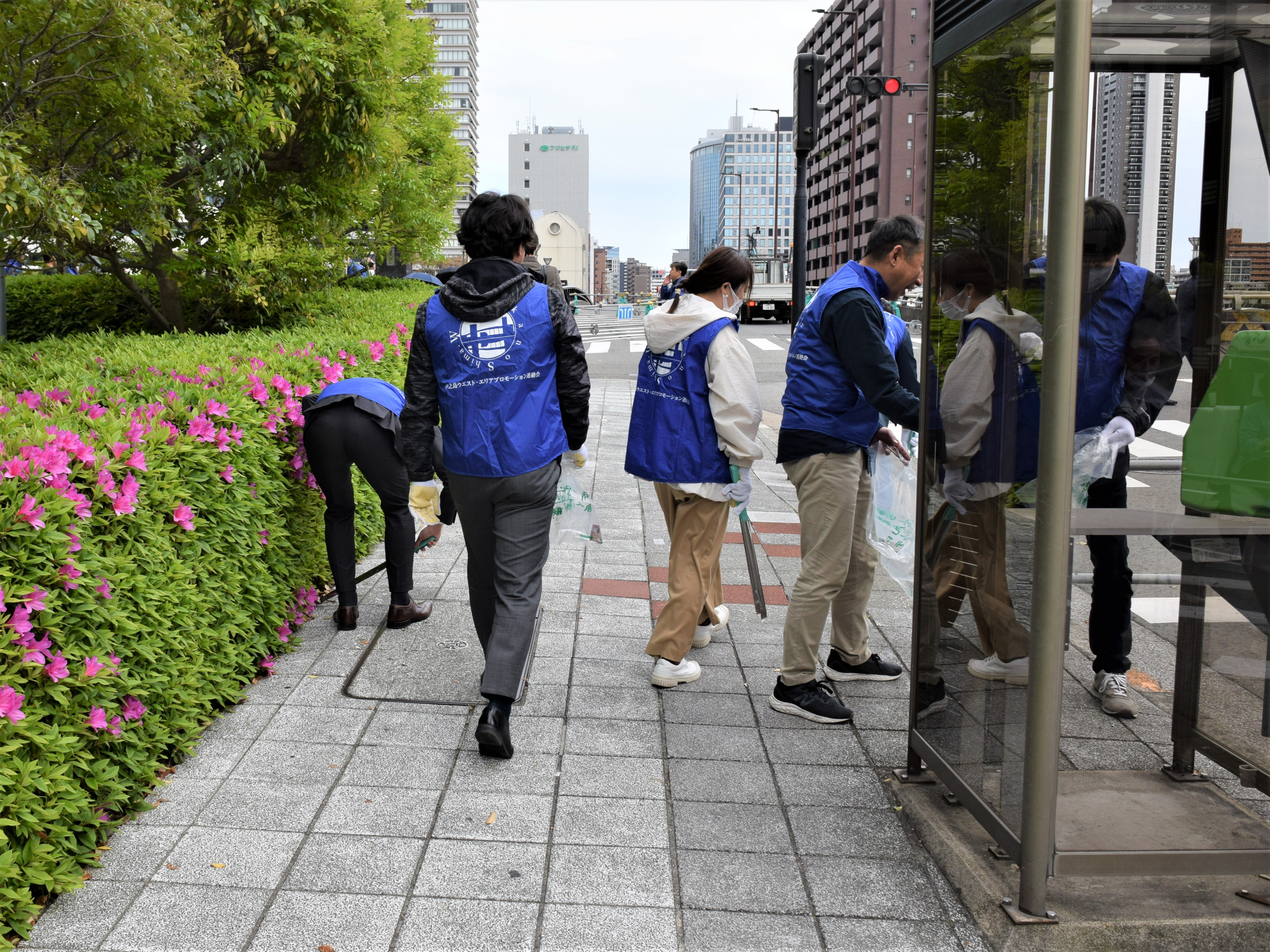 この活動は、当社が加盟している「中之島ウエスト・エリアプロモーション連絡会」の主催によるもので、この連絡会のメンバーをはじめ、大阪府・市、各地域連合町会及び協議会、また中之島ウエストエリア内企業と近隣の住民の皆さまにもご協力いただき、エリア一体で毎年この季節などに取り組み、積極的な情報交換や地域交流も重ねているものです。