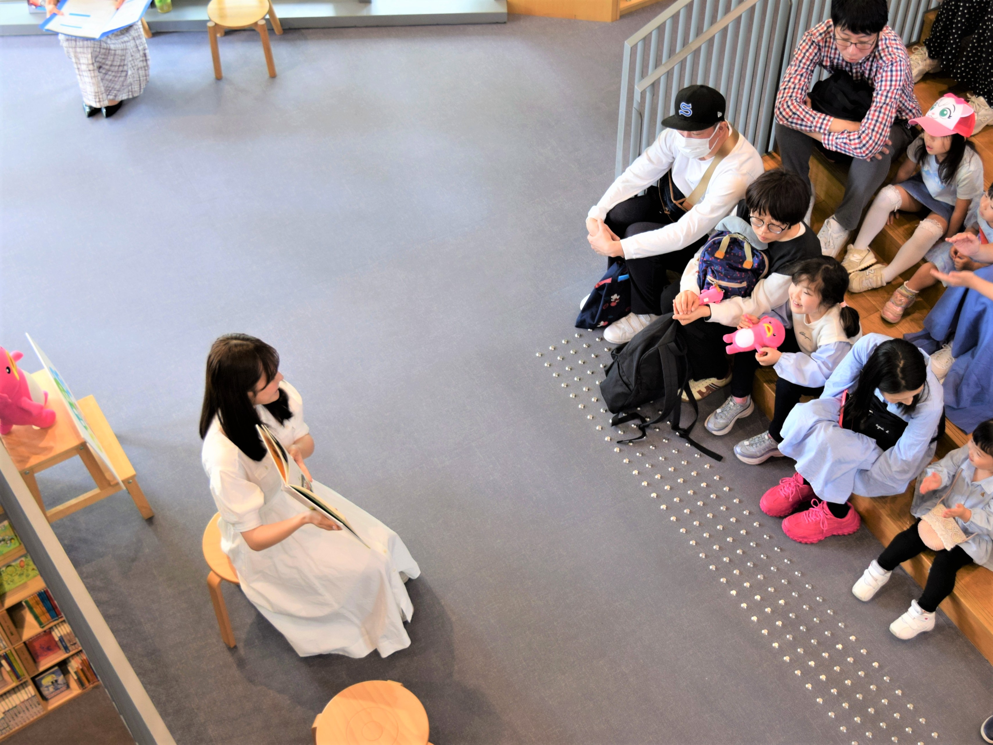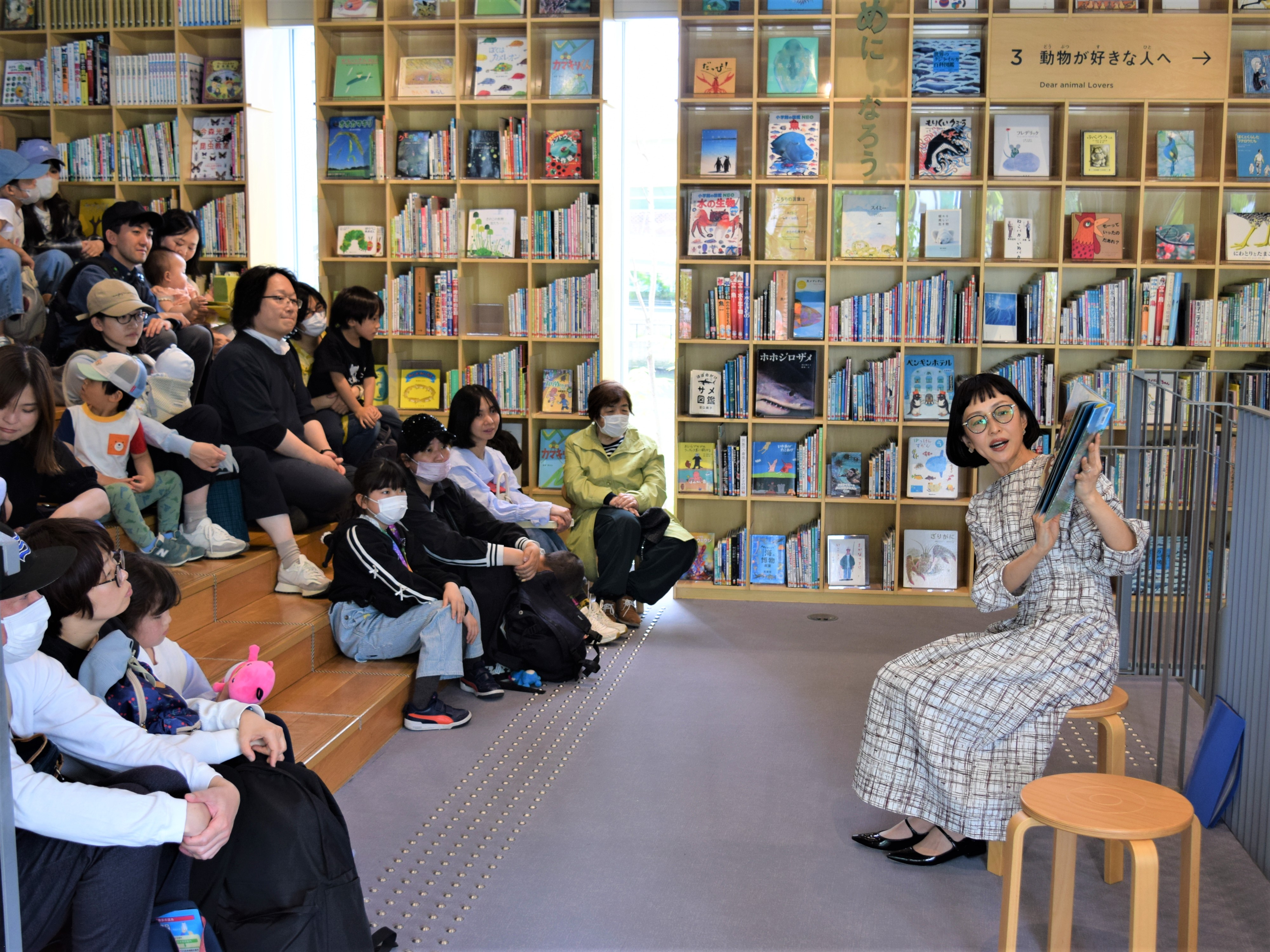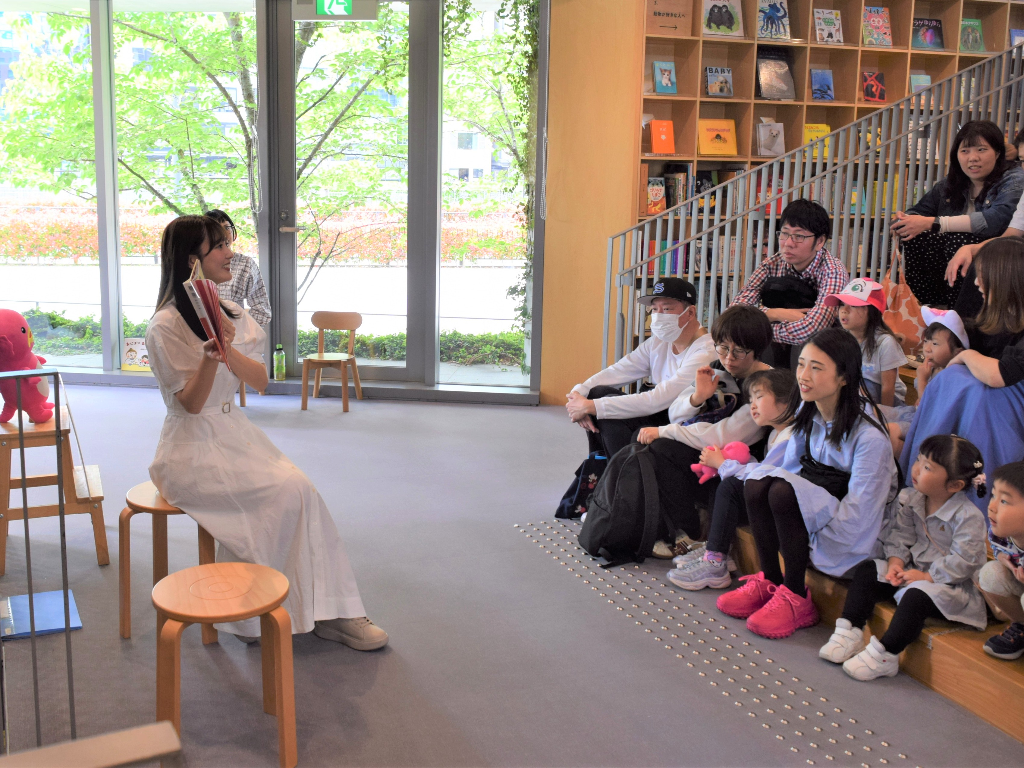 オープニングトークでは、光が差し込むこの施設が「大好きな空間」と加藤明子アナウンサー。久保光代アナウンサーは「中之島は初めて。前回は、神戸の“こども本の森”で皆さんとハロウィンを楽しみました!」と語り、参加した皆さんと一緒に春の大型連休の1日を過ごしました。