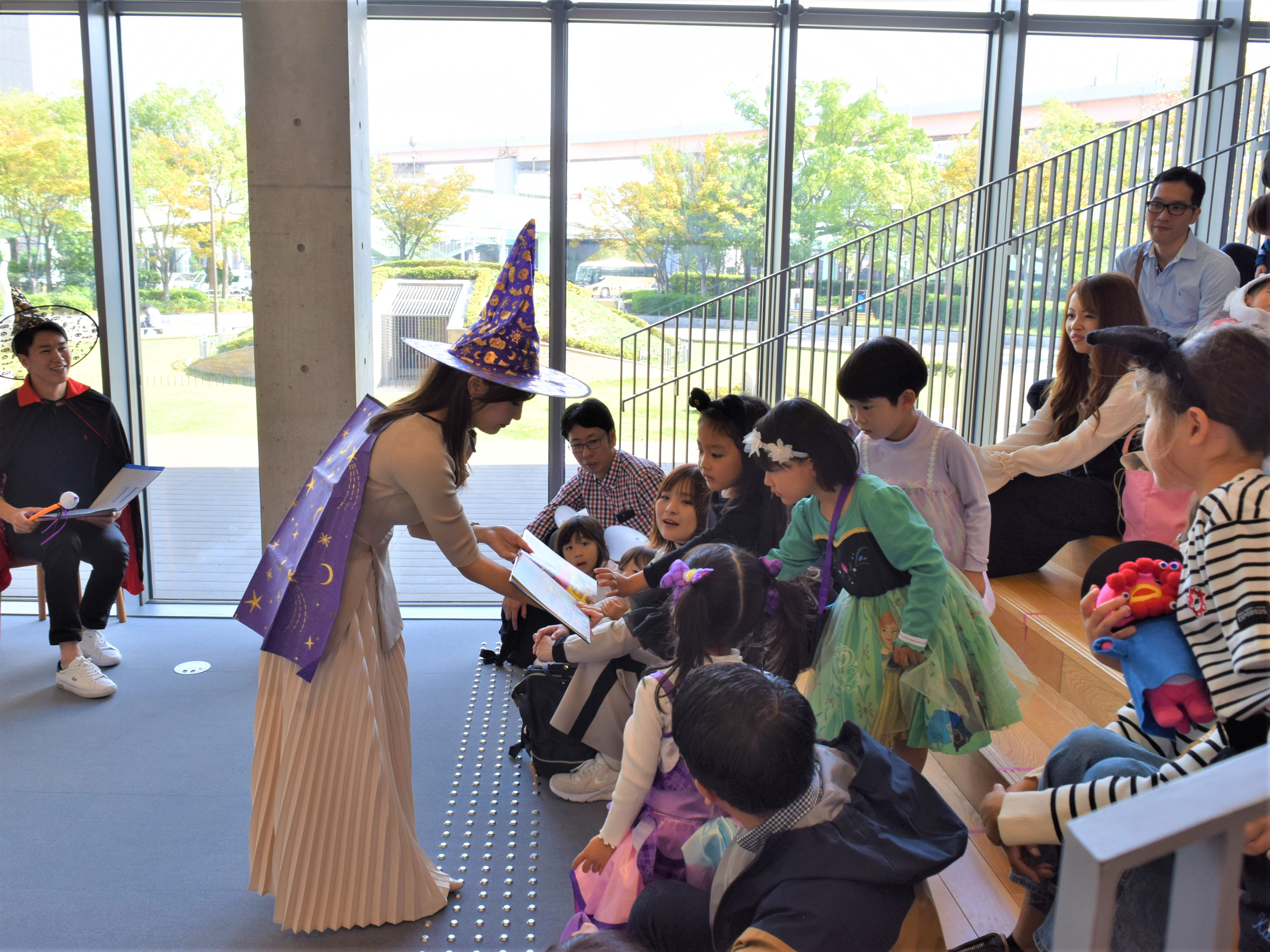 「おはなしの森」初登場の久保光代アナウンサーが朗読したのは、絵本の中に隠れているハロウィンにちなんだモノが現れる「ハロウィンのかくれんぼ」という絵本。「何かな?何かな?」の問いかけに、想像力を働かせて答えてくれた子どもたち。「初めての朗読だったけど、答えてくれてありがとう!」と感謝の気持ちを伝えました。さらに、「トリック オア トリート!」という、4人の子どもたちがとっておきの仮装で登場する絵本。「トリック オア トリート♪」を合言葉に、子どもたちと一緒に色んな家を巡りました。街中を訪れるシーンでは、子どもたちと一緒に仮装した主人公たちを探すなど、楽しい時間を過ごしました!